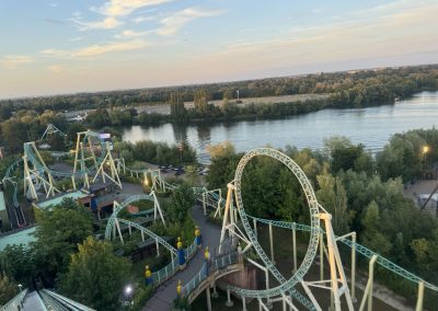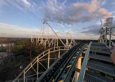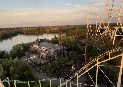 Once we got to the top we had the chance to take some fantastic pictures, the views from Colossus are incredible, with its location at the park you get a great 360 degree view of the entire park, with rides all around you, including of course Hyperia’s 236ft lift hill which dwarfs everything around it!