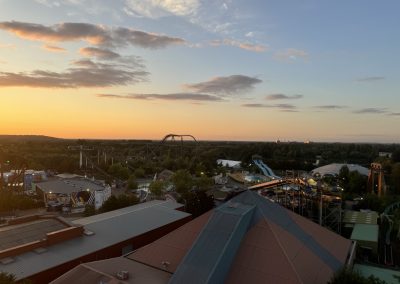 We got treated to a great view of the sunset too, which as you can see gave us chance to grab some stunning pictures of the park as the sun set over towards Stealth. We spent around 15 minutes at the top, which gave us ample opportunity to get any pictures we wanted and take in the view of the park around us.