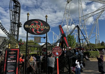 Samurai first operated at Thorpe Park’s sister park, Chessington, but in the 2004 season it was given a make-over in a new colour scheme and moved to Thorpe Park.