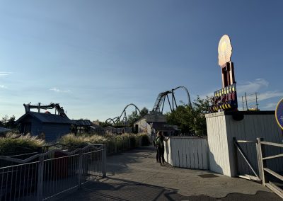 The area was extended to include the Amity Speedway when Stealth opened in 2006, themed around a racetrack next to the village. WWTP Radio extends here, with a different loop. Though Amity is divided by Big Easy Boulevard, the American theme throughout doesn’t create a jarring experience!
