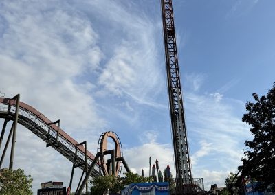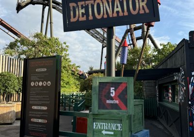 Detonator can be found smouldering away in the Big Easy Boulevard area of the park, next to Nemesis Inferno. A modest drop tower, standing at only 115ft, Detonator brings new meaning to the phrase ‘Never judge a book by its cover’. Elsewhere in the world, you can find drop towers three to four times Detonator’s height, but the opinion of many is that no tower can rival the sheer might of Detonator’s explosive drop. A Fabbri ‘Megadrop’ tower, it’s the pneumatic rams concealed at the tower’s peak that punch the 12-person gondola down the tower at speeds of up to 45mph. At the very bottom of the drop, riders experience an astonishing 5.5Gs – five and half times the force of gravity! Offering stunning views of the rest of the park, Detonator is up there with Thorpe Park’s most intense ride experience!