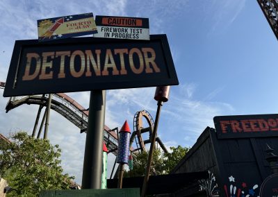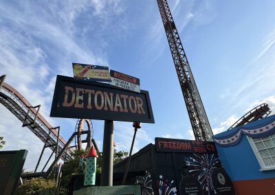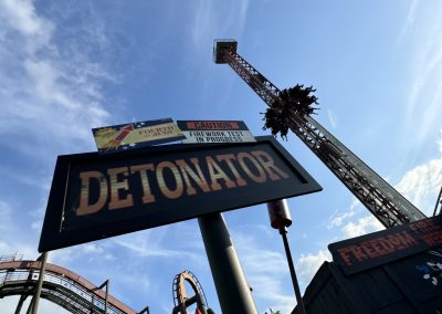 After being secured in your restraints, the ride sequence starts. The audio is as much part of the ride as the ride itself, and the deceptively playful soundtrack begins, counting down to your detonation. Once the gondola stops at the tower’s top, the countdown commences. Although some say the countdown removes the element of surprise, the sheer ferocity of the drop is enough to make up for it. Within three seconds you’ll be back down on terra firma trying to hold onto your stomach!