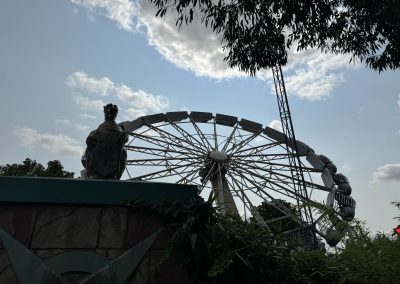 Zodiac is a staple theme park ride. In pictures it may look like a Ferris wheel but in fact, this spinning wheel of centripetal force rotates as fast as 45rpm, starting out flat and tilting to an 87° angle into the sky. There are no restraints or seat belts on Zodiac – but don’t worry, it’s built like that! Riders sit in pods and because of the speed of rotation of the wheel, centripetal force keeps riders firmly in their seats even when practically vertical as they spin above the Lost City!