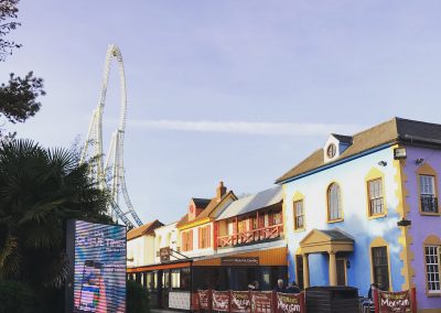Nemesis Inferno helped solidify the park’s status as a thrill park, opening the year after Colossus and coming at a time when the park was quickly adding rides. Designed with the help of John Wardley, the ride is based around an active volcano, and is regularly covered in most and lights.