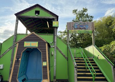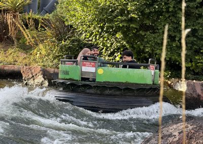 You’ll leave the leave platform after you’ve all been seated and make a U-turn before picking up speed downriver. You’ll get a unique view of the back of Stealth as you disappear into a dark tunnel concealing the waterfall! After emerging back out into the tropical sunshine, the boat will start to tip and turn and spin more as you race to the end of the river, carried all the way by the unpredictable calypso current!